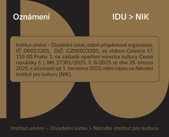 Institut umění – Divadelní ústav, státní příspěvková organizace, IČ: 00023205, DIČ: CZ00023205, se sídlem Celetná 17, 110 00 Praha 1, na základě opatření ministra kultury České republiky č. j. MK 27301/2025, č. 6/2025 ze dne 28. března 2025, s účinností od 1. července 2025 mění název na Národní institut pro kulturu (zkratka NIK). Ostatní identifikační údaje zůstávají beze změny.